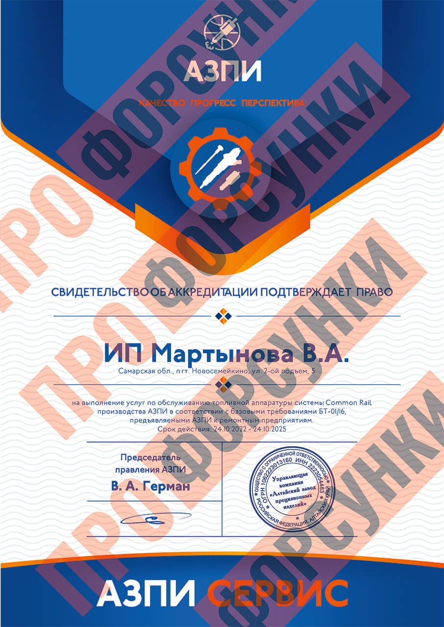 Сертификат о проверке и ремонту инжекторов Bosch систем Common Rail (CRI/CRIN). Проверка инжекторов Common Rail других производителей.